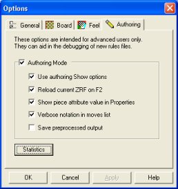 The Authoring Options dialog..