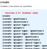 • New "create" keyword for adding pieces to the board.