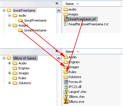 of /Audio into Zillions' /Audio, etcetera. All *.zrf files go into
